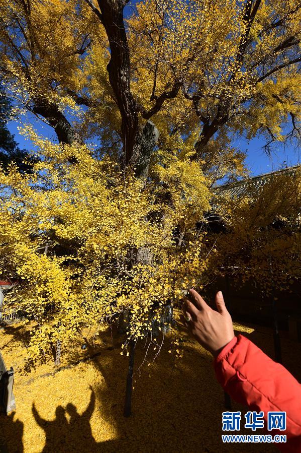 11月11日,人們在大覺寺內(nèi)觀賞古銀杏樹。新華社記者尹棟遜攝