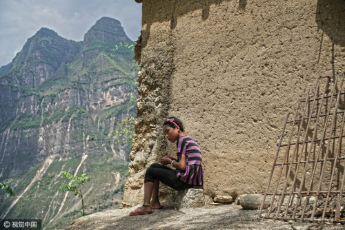 4月27日,阿土勒爾村的一個村民摔下了懸崖,村子里的大人對在山下讀書的孩子更加擔心起來。阿土勒爾村有15個6至15歲的孩子在山腳下的勒爾小學上學,平時住校,每月月中和月底的周末才回家。每次上下山,家長們都會輪流接送。 圖片來源:視覺中國