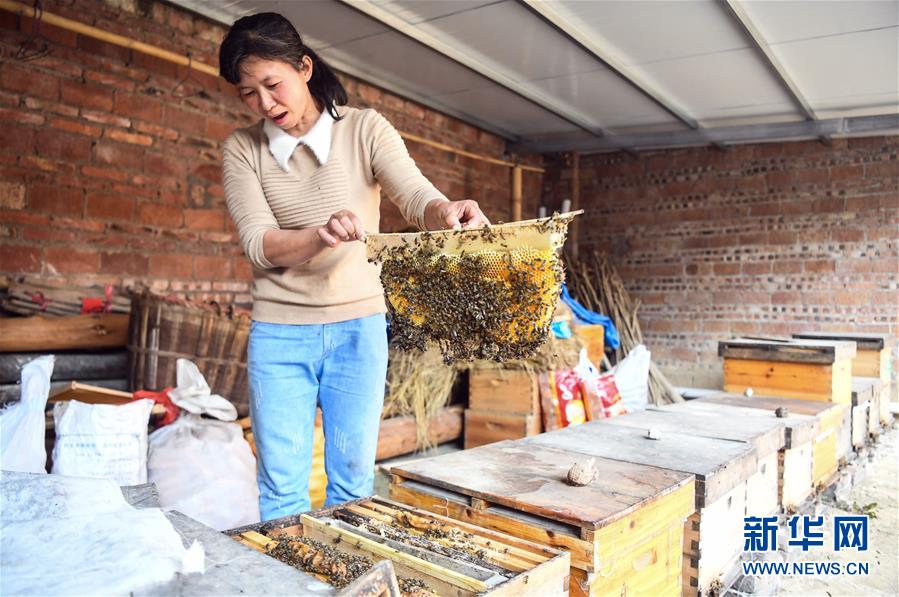 這是葉德華在查看蜂蜜成色,準備送檢(11月12日攝)。 葉德華是廣西陽朔縣楊堤鄉(xiāng)楊堤村村民,一家人的生計由她一人撐起,母親年邁,兒子年幼,家庭經(jīng)濟困難。 2017年起,葉德華在當?shù)胤鲐毟刹亢宛B(yǎng)蜂協(xié)會的幫扶下開始發(fā)展蜜蜂特色養(yǎng)殖,從養(yǎng)殖8箱蜜蜂起步走上養(yǎng)蜂脫貧致富路。目前她的蜂蜜產(chǎn)品遠銷上海、深圳、湖南等地,年收入近10萬元,不僅脫貧摘帽,還建起了兩層小樓。 目前,葉德華在努力學習電商銷售的同時,還積極向貧困戶傳授養(yǎng)蜂技能,爭取幫助更多人走上脫貧致富路。 新華社記者張愛林攝