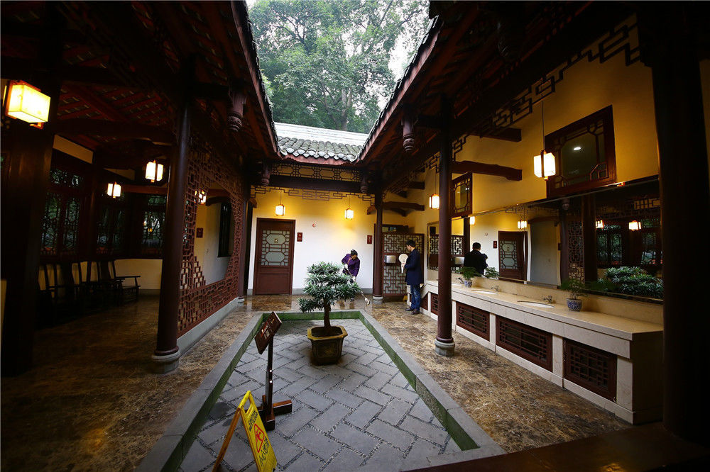 2017年01月03日,四川成都,在成都杜甫草堂景區(qū),現(xiàn)古建筑風格式廁所。據(jù)悉,廁所內(nèi)部設有母嬰室、飲水設備、公共電話、行李寄存柜,采用古建筑風格,為清一色的川西特色四合院。CYBS/視覺中國