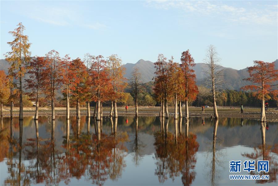 11月14日,游客在奇墅湖拍攝風(fēng)光。新華社記者劉軍喜攝