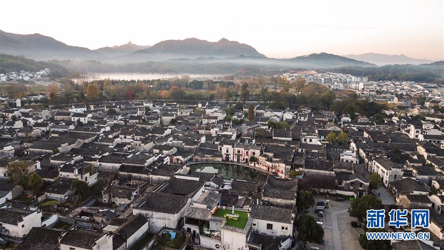 這是11月15日無(wú)人機(jī)拍攝的宏村風(fēng)景區(qū)晨景。新華社記者韓曉雨攝