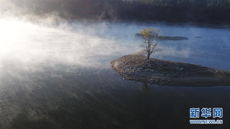這是11月15日無(wú)人機(jī)拍攝的安徽黟縣奇墅湖晨景。新華社記者張笑宇攝