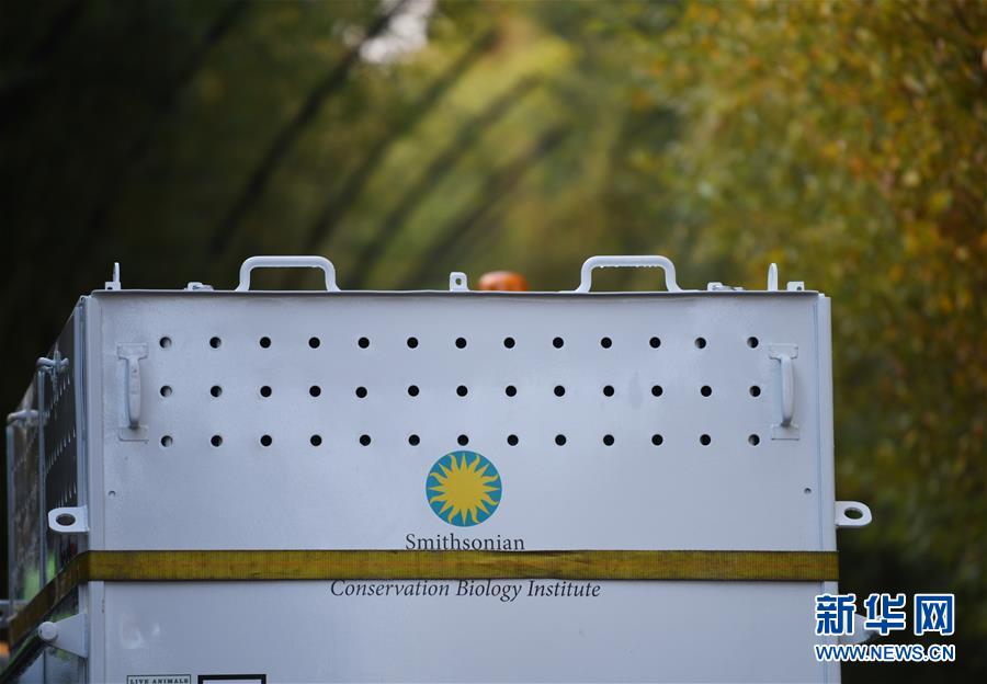 11月19日,在美國(guó)華盛頓的美國(guó)國(guó)家動(dòng)物園,裝有大熊貓“貝貝”的箱子被運(yùn)往卡車,準(zhǔn)備前往機(jī)場(chǎng)。 新華社記者 劉杰 攝