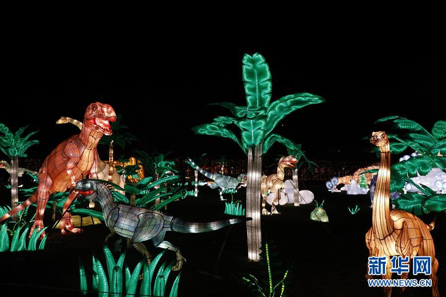 這是11月20日在美國紐約斯塔滕島第二屆紐約花燈游園會(huì)上拍攝的恐龍花燈。當(dāng)日,第二屆紐約花燈游園會(huì)在美國紐約斯塔滕島開幕,50余組各類花燈照亮夜空,吸引觀眾前來賞燈游玩。新華社記者李木子攝