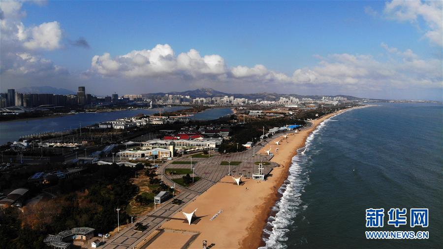 11月22日無人機(jī)拍攝的日照市萬平口海濱風(fēng)景區(qū)。山東省日照市萬平口海濱風(fēng)景區(qū)是當(dāng)?shù)芈糜蔚囊粡垺懊?,該景區(qū)憑借優(yōu)美的海灘、良好的水質(zhì)吸引了不少游客。新華社記者王凱攝