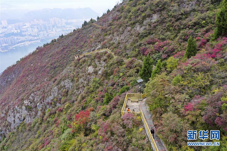11月23日,游客在位于長(zhǎng)江巫峽段的巫山文峰景區(qū)游覽(無(wú)人機(jī)拍攝)。初冬時(shí)節(jié),位于重慶巫山縣境內(nèi)的長(zhǎng)江巫峽段呈現(xiàn)出一江碧水東流、兩岸層林盡染的秀美景象。新華社記者王全超攝