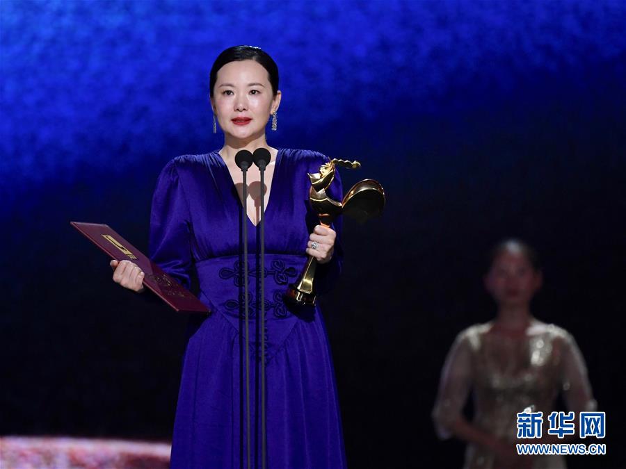 11月23日,電影《地久天長(zhǎng)》主演詠梅獲得最佳女主角獎(jiǎng)。 當(dāng)日,第32屆中國(guó)電影金雞獎(jiǎng)?lì)C獎(jiǎng)典禮在福建廈門(mén)舉行。 新華社記者姜克紅攝