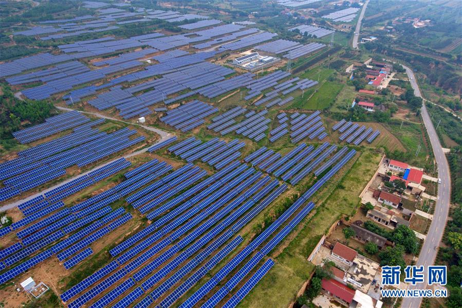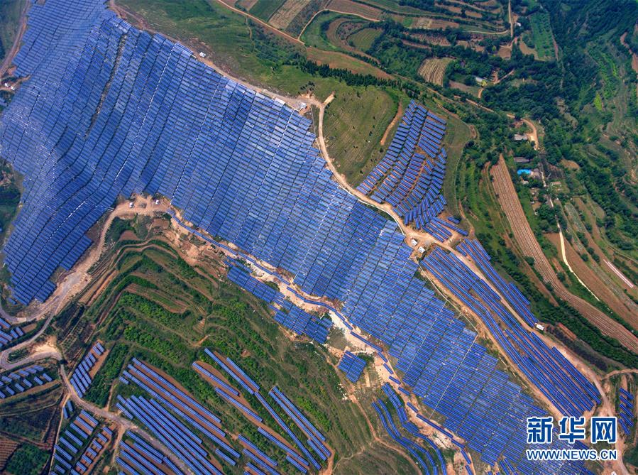 這是7月5日拍攝的山西省運(yùn)城市芮城縣光伏領(lǐng)跑技術(shù)基地(無人機(jī)拍攝)。  新華社記者曹陽攝