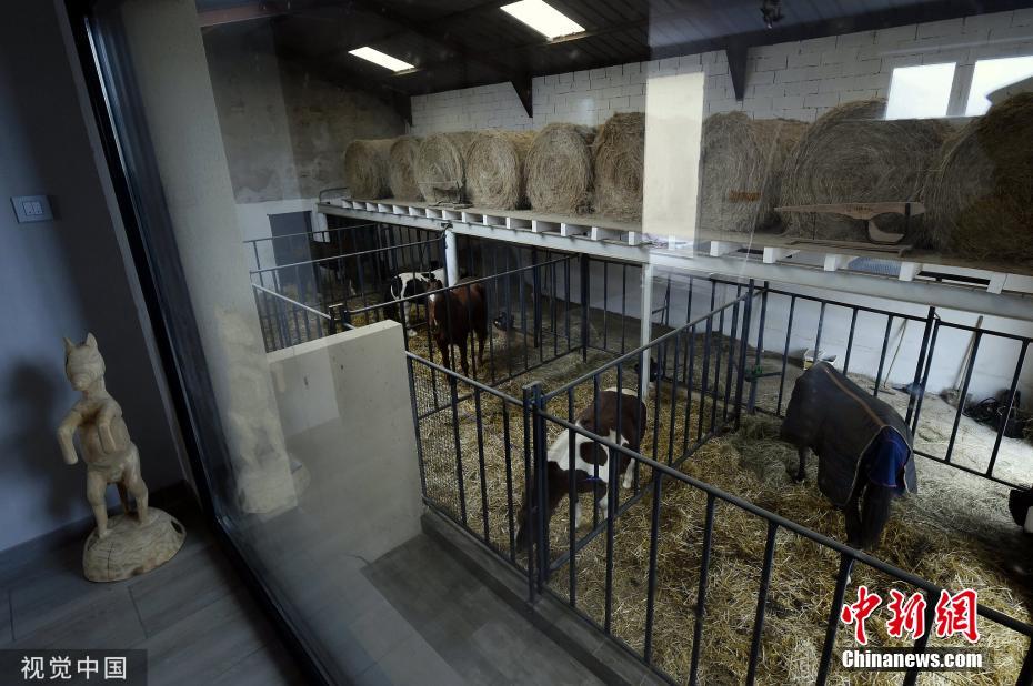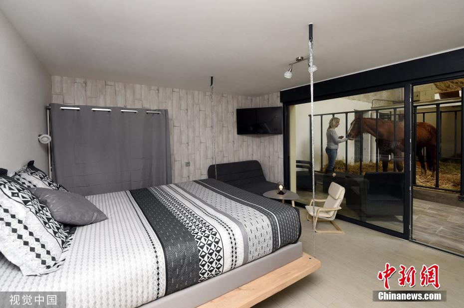 當(dāng)?shù)貢r(shí)間2019年11月25日,法國桑圖瓦地區(qū)弗賴斯內(nèi),一家特別的“酒店”開張,入住者可以透過玻璃清楚的看到馬廄里的馬,還可以跟馬親密接觸。圖片來源:視覺中國