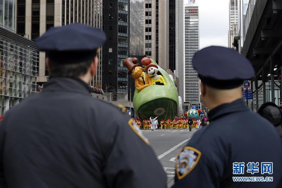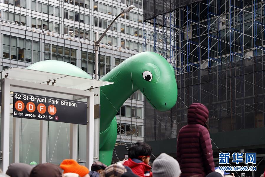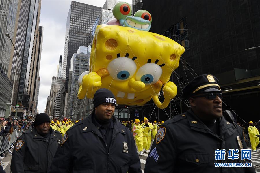 11月28日,在美國(guó)紐約舉行的感恩節(jié)大游行上,卡通氣球行進(jìn)在曼哈頓街頭。 新華社記者 李木子 攝
