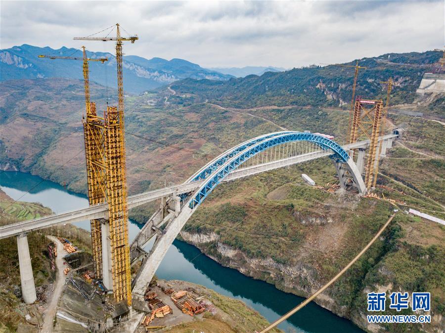 12月2日,一輛試驗列車駛過成貴高鐵鴨池河特大橋。新華社記者劉續(xù)攝