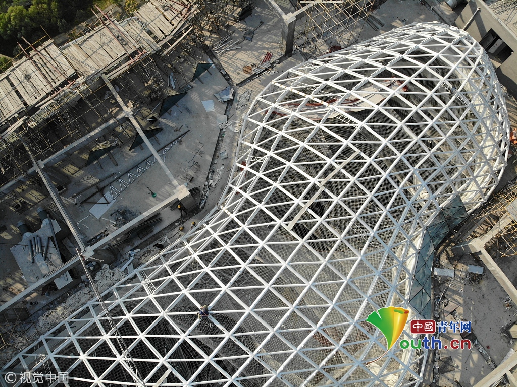 據(jù)了解,這是建造中的大閘蟹生態(tài)館,預(yù)計(jì)未來將在大閘蟹的白肚內(nèi)容納三層空間,集休閑、娛樂,以及有關(guān)大閘蟹體驗(yàn)于一體的設(shè)施。圖片來源:視覺中國(guó) 目前建筑主體已經(jīng)完工,地面景觀正在進(jìn)行,預(yù)計(jì)明年下半年建成開放。圖片來源:視覺中國(guó) |