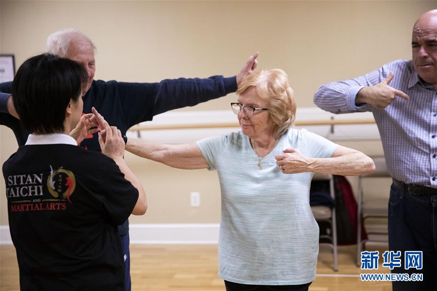 陳思坦的夫人林旭在位于美國紐約長島的一所社區(qū)老年活動(dòng)中心指導(dǎo)老人練習(xí)太極(11月20日攝)。這里是陳思坦夫婦開設(shè)的一個(gè)公益教學(xué)項(xiàng)目。11月的紐約已進(jìn)入初冬,位于美國紐約長島的思坦太極武術(shù)中心依然一片紅火景象,學(xué)員們從5歲的孩童到80多歲的老人,操練著太極拳、太極劍、長拳等武術(shù)招式。這里的主人陳思坦、林旭夫婦,也從早忙到晚,精心指導(dǎo)每一位學(xué)員的一招一式。6歲習(xí)武,22歲成為中國全國冠軍,26歲獲得首個(gè)世界冠軍……直到30歲退役,陳思坦在運(yùn)動(dòng)員生涯中曾獲得過32次國內(nèi)外各類武術(shù)大賽冠軍。36歲那年,懷著以太極拳和中國武術(shù)為媒介向世界推廣中國文化的夢想,陳思坦到美國紐約尋找新的舞臺。經(jīng)過十多年的艱苦打拼,陳思坦夫婦目前在紐約長島、法拉盛和曼哈頓都開設(shè)了長期的課程,思坦太極注冊在編的各個(gè)年齡段的學(xué)員近千人,有些“高徒”現(xiàn)在自己也開班授課,將太極推向更多地方。陳思坦夫婦現(xiàn)在思考更多的是如何將太極和武術(shù)推廣給更多的美國人,并讓他們理解其中蘊(yùn)含的平衡、和諧的中國文化理念。他們創(chuàng)辦了紐約太極健身氣功活動(dòng)日,在各類學(xué)校和社區(qū)開設(shè)太極或者武術(shù)課程,并利用美國的亞太裔文化月和多元文化節(jié)舉行武術(shù)和太極表演和體驗(yàn)課程,讓更多美國人親眼看到、親身體會中國武術(shù)的魅力。從2011年起,他們還參與創(chuàng)辦了紐約太極大賽,如今已舉行九屆,吸引了美國、加拿大和中國國內(nèi)的隊(duì)伍參賽,影響力逐漸擴(kuò)大。新華社記者王迎攝