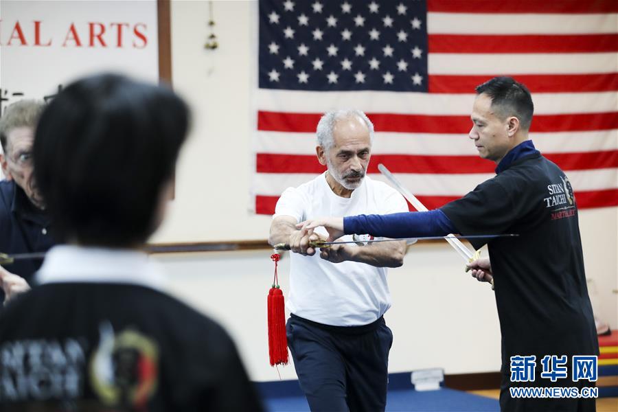 陳思坦在位于美國紐約長島的思坦太極武術(shù)中心指導(dǎo)學(xué)員練習(xí)太極劍(11月20日攝)。11月的紐約已進(jìn)入初冬,位于美國紐約長島的思坦太極武術(shù)中心依然一片紅火景象,學(xué)員們從5歲的孩童到80多歲的老人,操練著太極拳、太極劍、長拳等武術(shù)招式。這里的主人陳思坦、林旭夫婦,也從早忙到晚,精心指導(dǎo)每一位學(xué)員的一招一式。6歲習(xí)武,22歲成為中國全國冠軍,26歲獲得首個(gè)世界冠軍……直到30歲退役,陳思坦在運(yùn)動(dòng)員生涯中曾獲得過32次國內(nèi)外各類武術(shù)大賽冠軍。36歲那年,懷著以太極拳和中國武術(shù)為媒介向世界推廣中國文化的夢想,陳思坦到美國紐約尋找新的舞臺。經(jīng)過十多年的艱苦打拼,陳思坦夫婦目前在紐約長島、法拉盛和曼哈頓都開設(shè)了長期的課程,思坦太極注冊在編的各個(gè)年齡段的學(xué)員近千人,有些“高徒”現(xiàn)在自己也開班授課,將太極推向更多地方。陳思坦夫婦現(xiàn)在思考更多的是如何將太極和武術(shù)推廣給更多的美國人,并讓他們理解其中蘊(yùn)含的平衡、和諧的中國文化理念。他們創(chuàng)辦了紐約太極健身氣功活動(dòng)日,在各類學(xué)校和社區(qū)開設(shè)太極或者武術(shù)課程,并利用美國的亞太裔文化月和多元文化節(jié)舉行武術(shù)和太極表演和體驗(yàn)課程,讓更多美國人親眼看到、親身體會中國武術(shù)的魅力。從2011年起,他們還參與創(chuàng)辦了紐約太極大賽,如今已舉行九屆,吸引了美國、加拿大和中國國內(nèi)的隊(duì)伍參賽,影響力逐漸擴(kuò)大。新華社記者王迎攝
