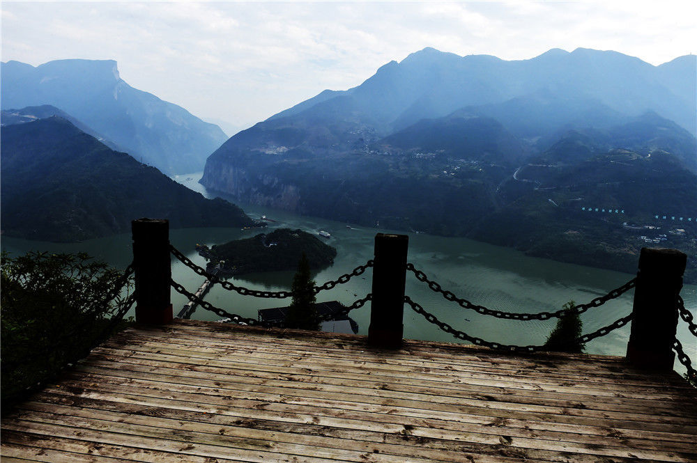 2019年11月3日,重慶,位于魚腹山懸崖、紫陽(yáng)城遺址的觀景臺(tái)。