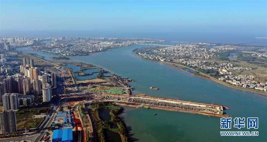 正在施工的海口文明東越江通道項(xiàng)目(12月14日無(wú)人機(jī)拍攝)。 新華社記者 郭程 攝