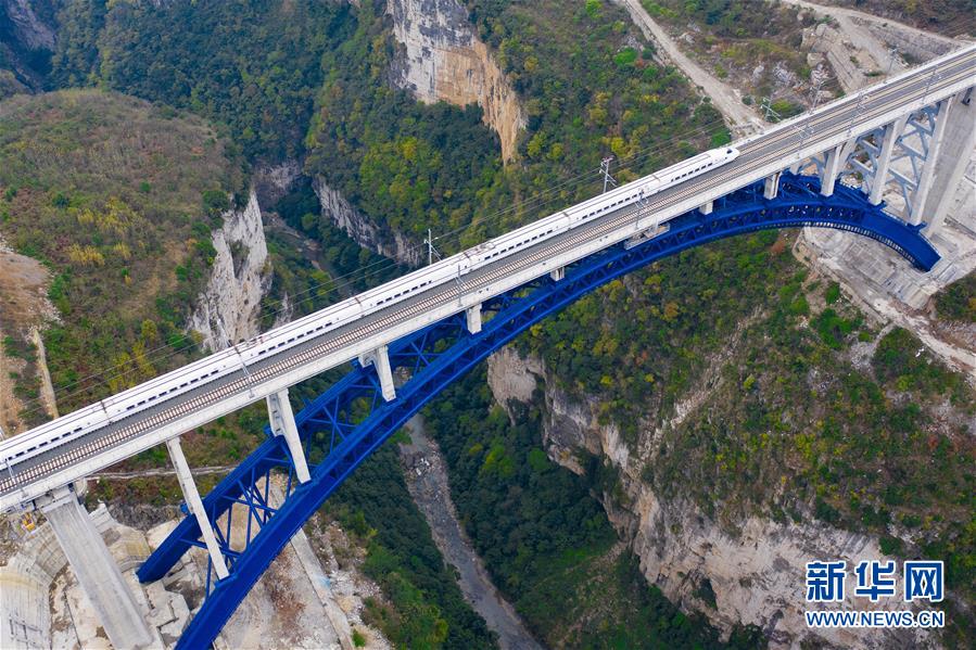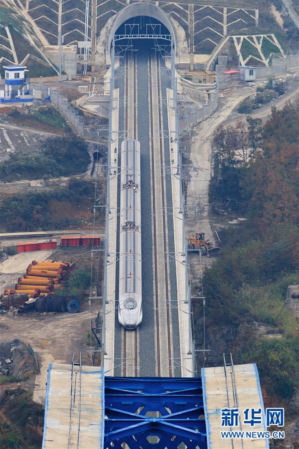 12月2日,一輛試驗列車駛過成貴高鐵鴨池河特大橋。當日,正在進行聯(lián)調(diào)聯(lián)試的成貴高鐵進入全線拉通空載模擬運行階段,試驗列車將在成都到貴陽區(qū)間內(nèi)全線路運行。線路全長650公里的成貴高鐵是我國“八縱八橫”高速鐵路網(wǎng)的重要組成部分,設計時速為250公里。新華社記者劉續(xù)攝