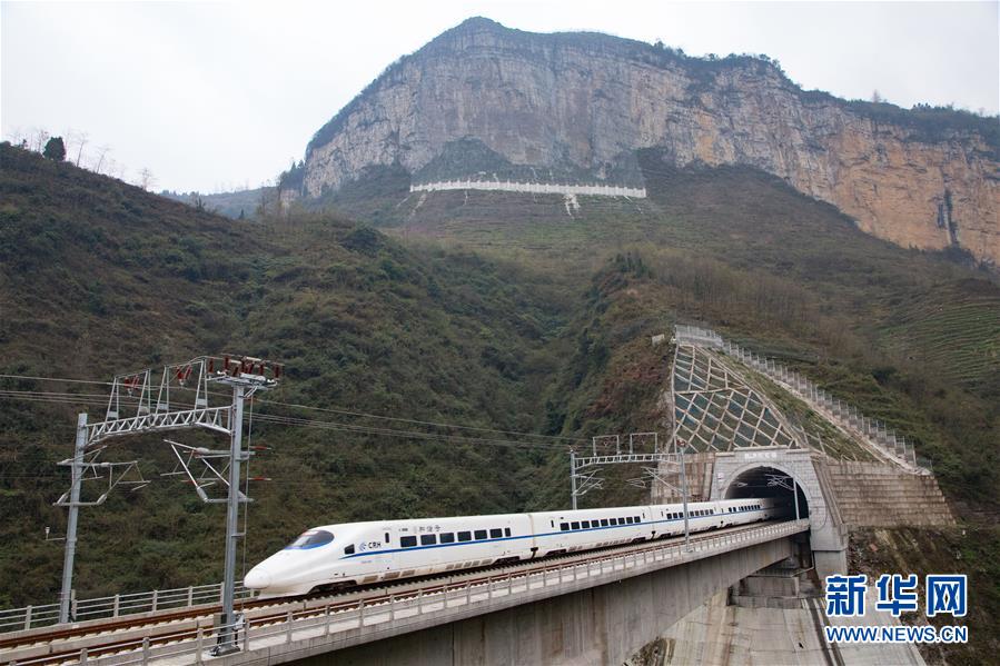 12月15日,一列試驗列車行駛在貴州清鎮(zhèn)市境內(nèi)的成貴高鐵線上。成(都)貴(陽)高鐵預計于12月16日全線正式開通運營。成貴高鐵線路全長650公里,是我國“八縱八橫”高速鐵路網(wǎng)的重要組成部分,設計時速為250公里。新華社記者楊文斌攝
