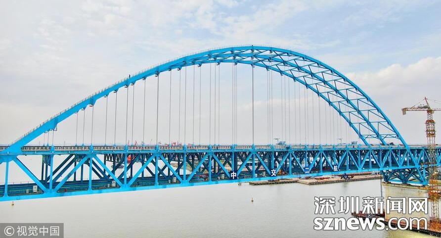 3月14日,施工人員在鴨池河特大橋上拆除輔助設施。新華社記者劉續(xù)攝