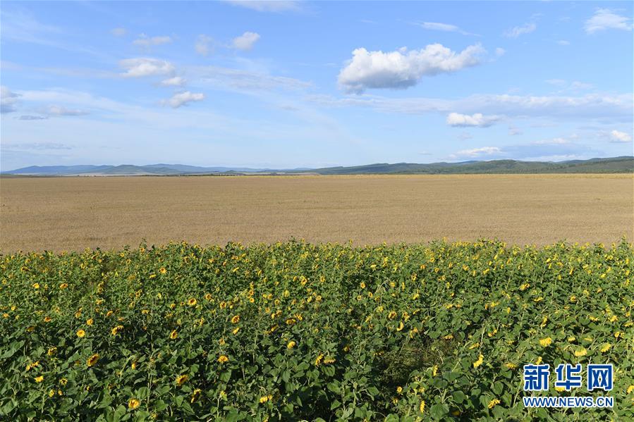 8月28日無人機拍攝的呼倫貝爾市額爾古納市室韋農(nóng)牧場的田園風光。新華社記者劉磊攝