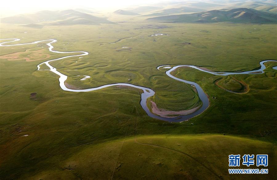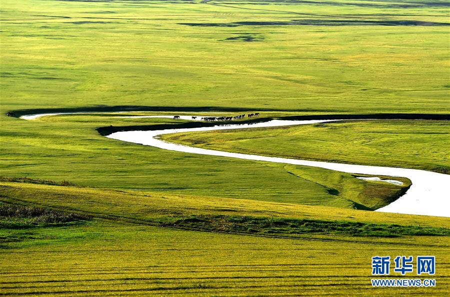8月26日無人機拍攝的伊敏河(全景照片)。伊敏河流經(jīng)呼倫貝爾草原。新華社記者沈伯韓攝