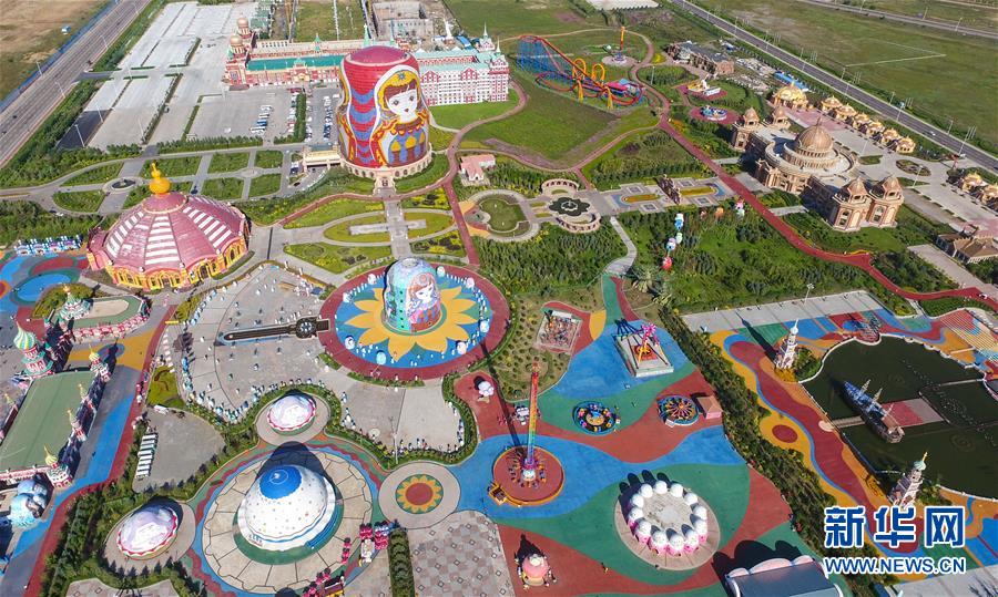 8月29日無人機拍攝的滿洲里市套娃廣場景區(qū)。滿洲里市位于呼倫貝爾大草原腹地。新華社記者沈伯韓攝