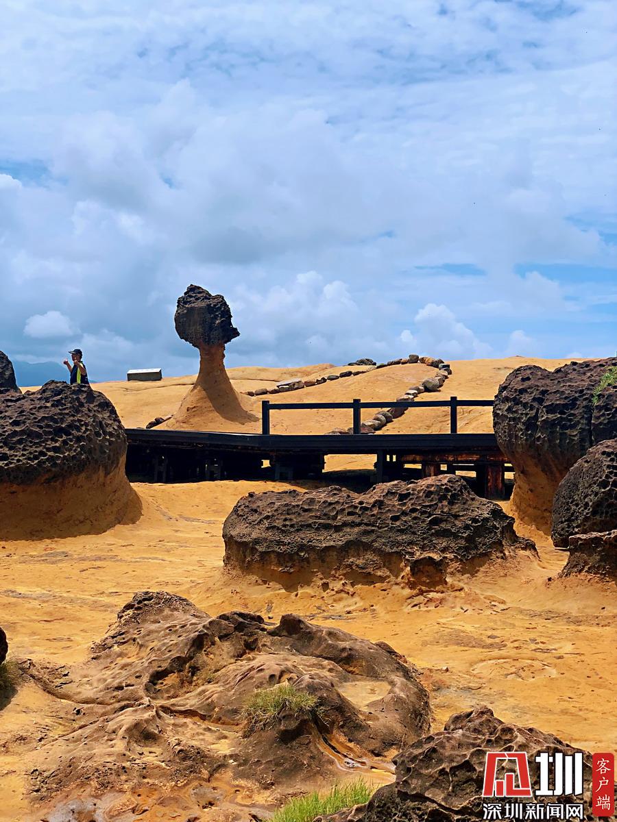 野柳地質(zhì)公園(Yehliu Geopark),位于臺灣新北市萬里區(qū),野柳是突出海面的岬角(大屯山系),長約1700公尺,由于海蝕風(fēng)化及地殼運(yùn)動等作用,造就了海蝕洞溝、蜂窩石、燭狀石、豆腐石、蕈狀巖、壺穴、溶蝕盤等綿延羅列的奇特景觀。孫遜攝