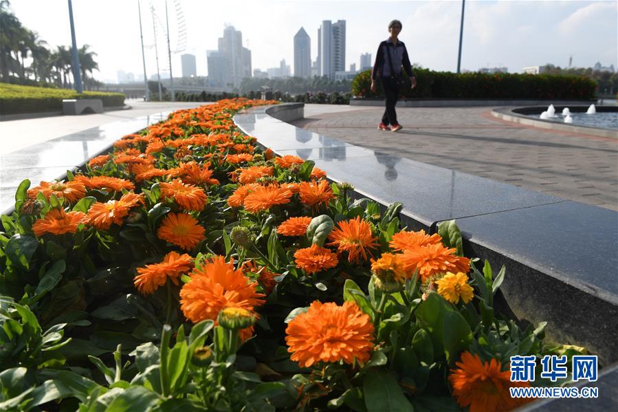 12月17日,市民從南寧市南湖邊綠樹(shù)鮮花間走過(guò)。新華社記者 陸波岸 攝