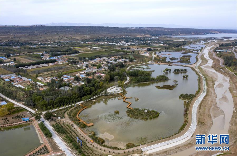 寧夏固原市原州區(qū)境內的清水河流域在進行防洪加固和人工濕地工程建設(10月10日無人機拍攝)。 新華社記者 馮開華 攝