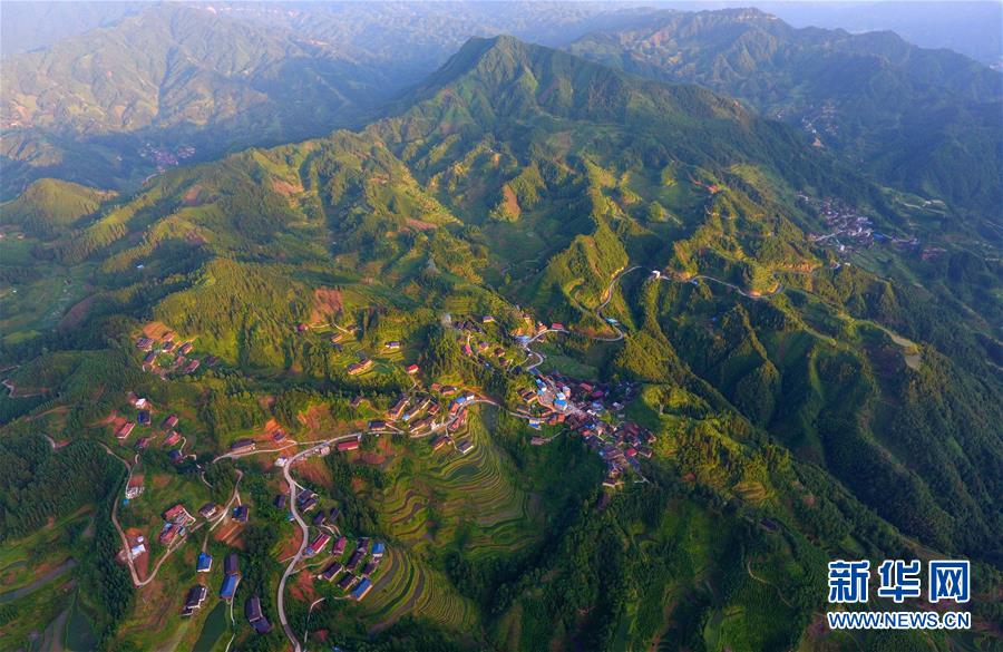 在融水苗族自治縣桿洞鄉(xiāng)黨鳩村下黨鳩屯,道路已經(jīng)修到家家戶戶門前(6月21日無(wú)人機(jī)拍攝)。新華社記者黃孝邦攝