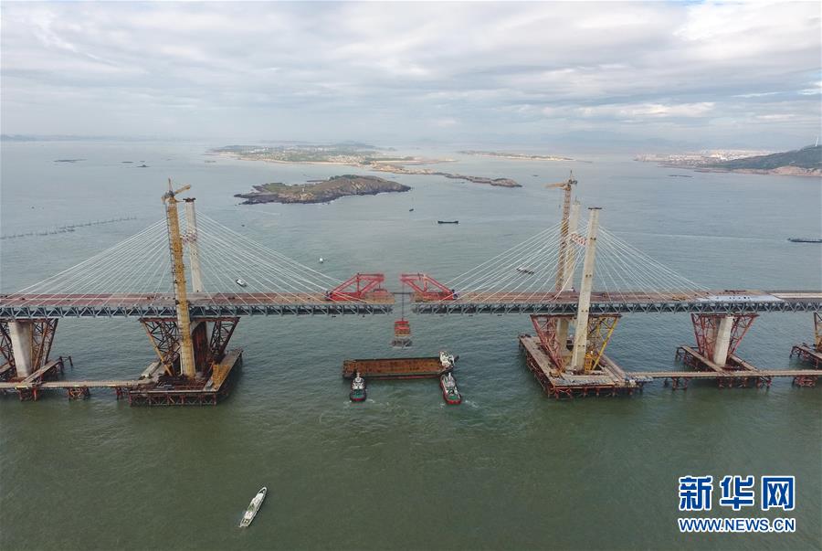 9月21日,平潭海峽公鐵大橋鼓嶼門航道橋的鋼桁梁在吊裝中(無人機拍攝)。9月25日上午,隨著一段長17米、重473噸的鋼桁梁被精確固定到位,總長16.34公里的平潭海峽公鐵大橋合龍貫通。平潭海峽公鐵大橋是福州至平潭鐵路控制性工程,也是“十三五”規(guī)劃中北京至臺灣高鐵的先期工程。大橋起于福州市長樂區(qū),“踏”過四座小島后抵達中國第五大島平潭,上層設(shè)計為時速100公里的六車道高速公路,下層為設(shè)計時速200公里的高鐵。據(jù)福建福平鐵路公司介紹,大橋計劃2020年正式通車。在六年建設(shè)過程中,平潭海峽公鐵大橋所應(yīng)用研發(fā)的多項技術(shù)、裝備創(chuàng)下國內(nèi)外紀錄。新華社記者林善傳攝