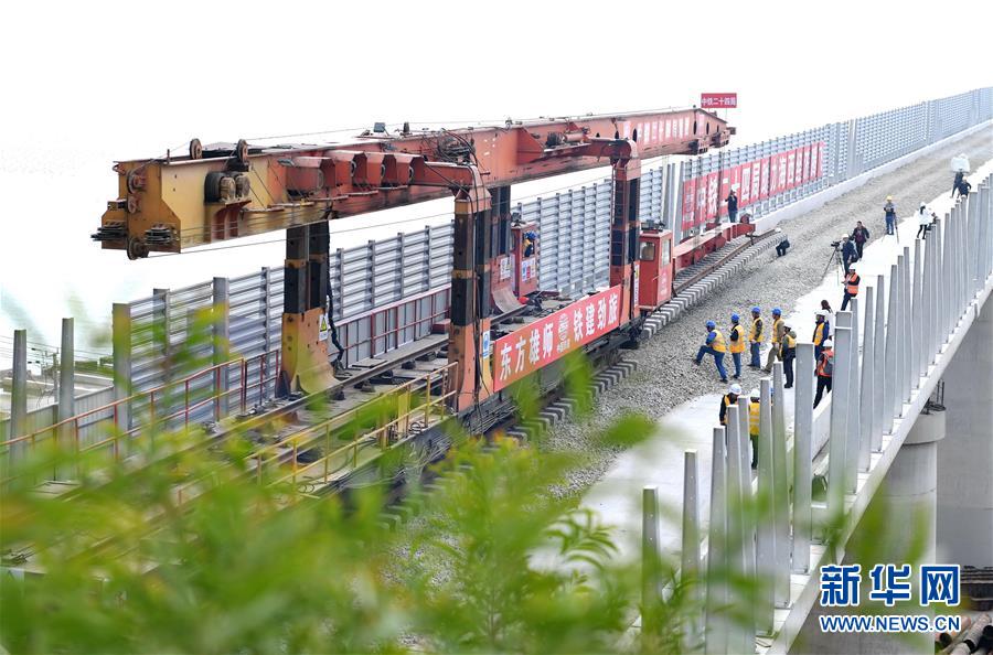 12月22日,中鐵二十四局工作人員在平潭海峽公鐵大橋鋪軌施工現(xiàn)場進行鋪軌作業(yè)。當日,總長為16.34公里的福平鐵路平潭海峽公鐵大橋鋪軌正式啟動。平潭海峽公鐵大橋是福州至平潭鐵路控制性工程,上層設(shè)計為時速100公里的六車道高速公路,下層為設(shè)計時速200公里的高鐵,大橋計劃2020年正式通車。新華社記者林善傳攝