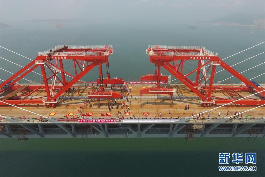 6月5日,福平鐵路平潭海峽公鐵兩用大橋元洪航道橋主橋正式合龍。新華社記者林善傳攝