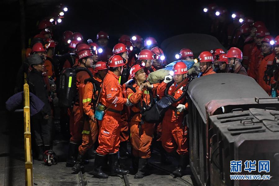12月18日,救援人員轉(zhuǎn)運(yùn)安全升井的被困人員。 當(dāng)日7時(shí)56分,經(jīng)過(guò)80多個(gè)小時(shí)的緊張救援,發(fā)生透水事故的川煤集團(tuán)杉木樹(shù)煤礦13名被困人員全部安全升井。 新華社記者 薛玉斌 攝