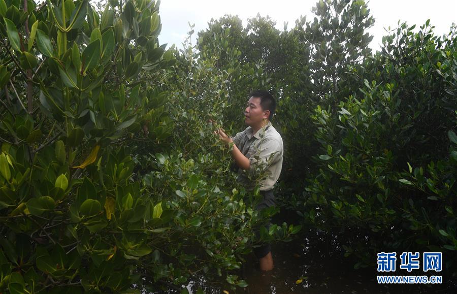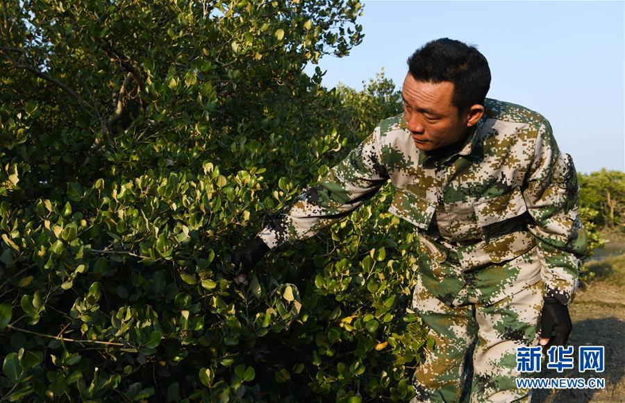 海南儋州新英灣紅樹林市級(jí)自然保護(hù)區(qū)護(hù)林員陳正平查看保護(hù)區(qū)內(nèi)的紅樹林情況(12月9日攝)。陳正平2010年開始在保護(hù)區(qū)工作,他將工作發(fā)展成愛好,廣泛參加各種培訓(xùn)和業(yè)內(nèi)交流。他在工作中拍到瀕危鳥類白肩雕出現(xiàn)在海南的照片,這刷新了海南省的鳥種記錄。新華社記者楊冠宇攝