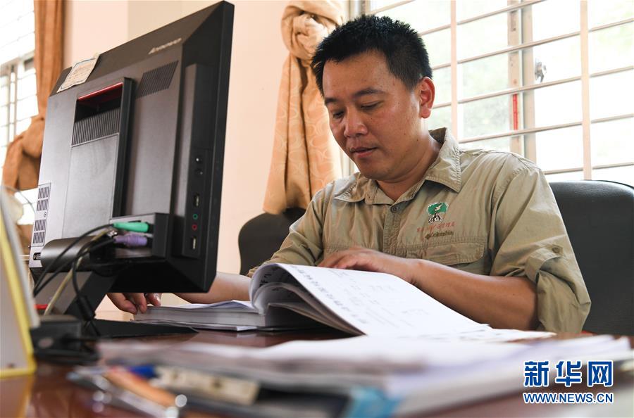 海南東寨港國(guó)家級(jí)自然保護(hù)區(qū)林業(yè)工程師馮爾輝在保護(hù)區(qū)內(nèi)的辦公室查看相關(guān)資料(12月18日攝)。 馮爾輝2009年大學(xué)畢業(yè)后來到保護(hù)區(qū)工作,小時(shí)候他家就住在紅樹林邊上,他從小和紅樹林打交道,喜歡動(dòng)植物和鳥類。外貿(mào)專業(yè)畢業(yè)的他邊工作邊學(xué)習(xí),目前主要從事鳥類監(jiān)測(cè)、紅樹林保育、自然教育等工作?!凹t樹林看著我長(zhǎng)大”,馮爾輝說,濕地保護(hù)的工作非常有意義。 新華社記者楊冠宇攝