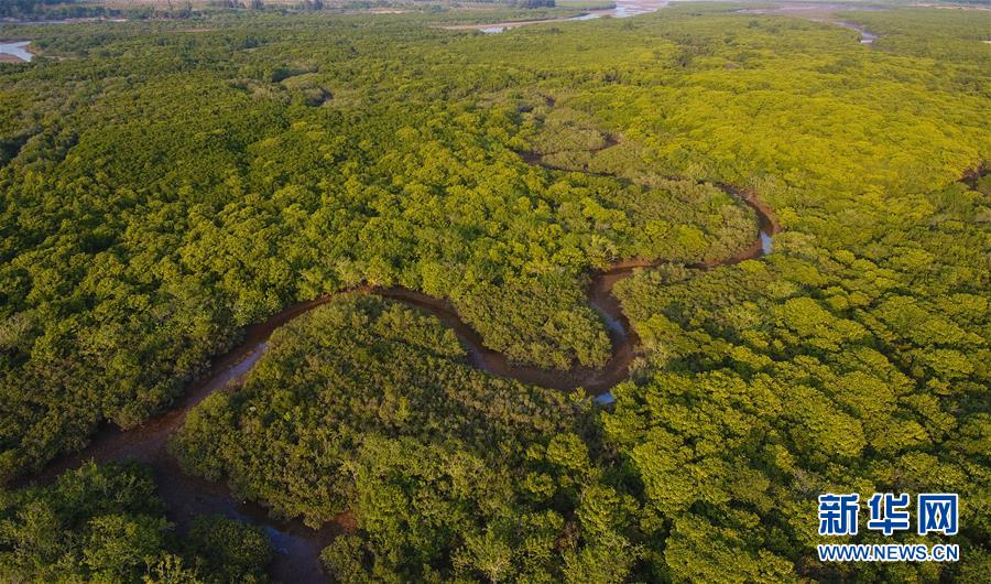海南清瀾港省級(jí)自然保護(hù)區(qū)內(nèi)的紅樹林(12月17日無(wú)人機(jī)拍攝)。 新華社記者楊冠宇攝