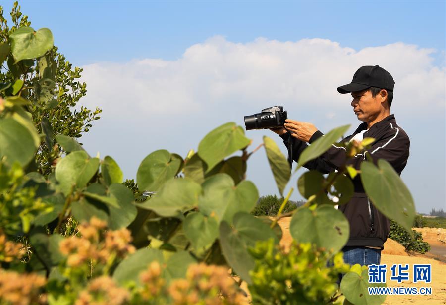 海南新盈紅樹林國(guó)家濕地公園巡護(hù)員兼監(jiān)測(cè)員羅理想在濕地公園內(nèi)拍攝紅樹林(12月11日攝)。 羅理想2006年起開始參與紅樹林濕地的保護(hù)工作,近年來他參加了很多關(guān)于濕地的培訓(xùn)。2016年,羅理想在工作中監(jiān)測(cè)到極危鳥種勺嘴鷸,當(dāng)時(shí)有許多媒體做了報(bào)道,后來他又配合專家在濕地公園里發(fā)現(xiàn)了拉氏紅樹,“那個(gè)時(shí)候感覺自己的工作很有價(jià)值”,羅理想說。新華社記者楊冠宇攝
