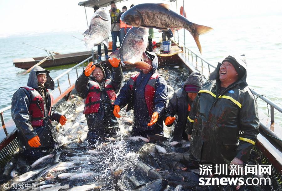 云南星云湖 開湖捕魚忙