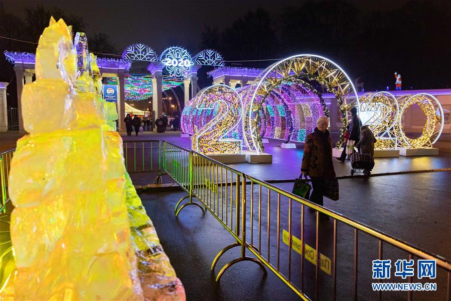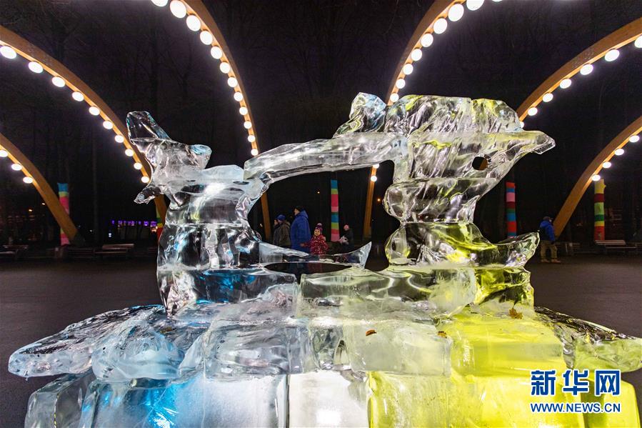 12月24日,在俄羅斯首都莫斯科,人們參觀冰雕藝術(shù)展。  新華社記者 白雪騏 攝