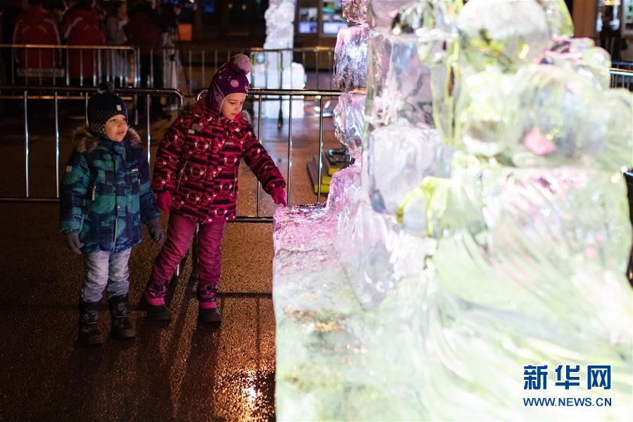 12月24日,在俄羅斯首都莫斯科,小朋友參觀冰雕藝術(shù)展。 哈爾濱冰雕藝術(shù)展24日在莫斯科開幕,現(xiàn)場展出了哈爾濱大劇院、防洪紀(jì)念塔以及莫斯科紅場建筑群等惟妙惟肖的冰雕作品,吸引眾多游客駐足拍照。 參加本次冰雕藝術(shù)展的十名冰雕師提前抵達(dá)莫斯科,以新中國成立70周年、中俄建交70周年、“一帶一路”倡議等為主題,為莫斯科民眾奉上了精美的新年禮物。 新華社記者 白雪騏 攝