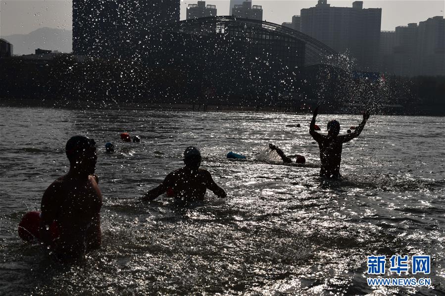 12月20日,冬泳愛好者準(zhǔn)備上岸。新華社記者賀長山攝