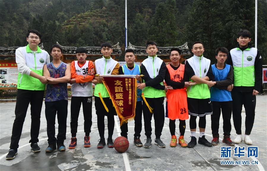 12月26日,澳門青年藝能志愿工作會的義教老師們和烏英苗寨的青年們在籃球比賽前合影留念。 新華社記者 王諾 攝