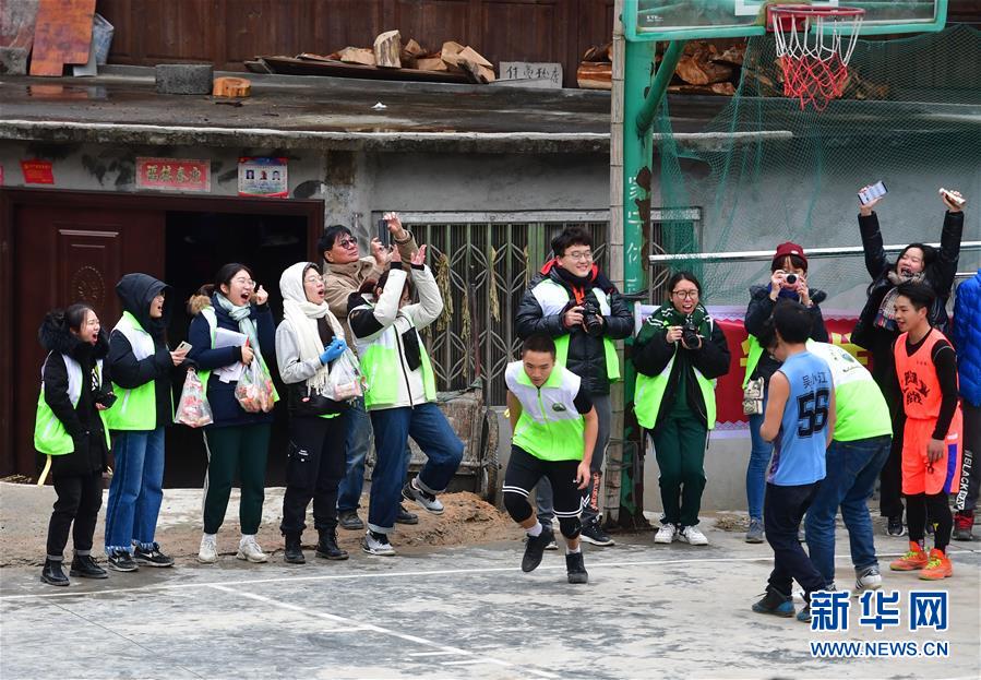 12月26日,澳門青年藝能志愿工作會的義教老師們在烏英苗寨觀看籃球比賽。 新華社記者 黃孝邦 攝
