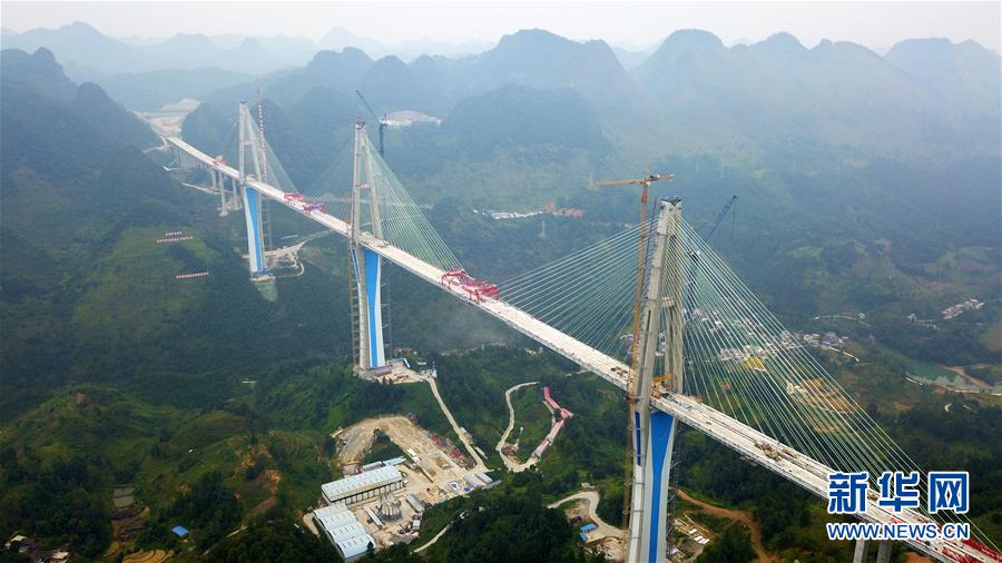 當日,332米高的全球最高混凝土橋塔——貴州平塘至羅甸高速公路控制性工程平塘特大橋成功合龍。記者從貴州省交通運輸廳了解到,平塘特大橋全長2135米,橋面寬30.2米,規(guī)劃雙向4車道,是一座三塔雙索面疊合梁斜拉橋。三座橋塔的高度分別為320米、332米和298米,相當于在峽谷之中建了三座100多層高的大樓。平塘特大橋于2016年4月開工建設(shè),2018年11月橋塔順利封頂,計劃總工期為42個月,總投資15億元。此次合龍后,還要進行橋面施工和欄桿等工程建設(shè),預(yù)計今年底全橋通車,屆時平塘到羅甸的通行時間將從2個半小時縮短至1小時,將成為連接貴州南部的交通要道,對助推滇黔桂石漠化片區(qū)脫貧攻堅具有重要意義。
