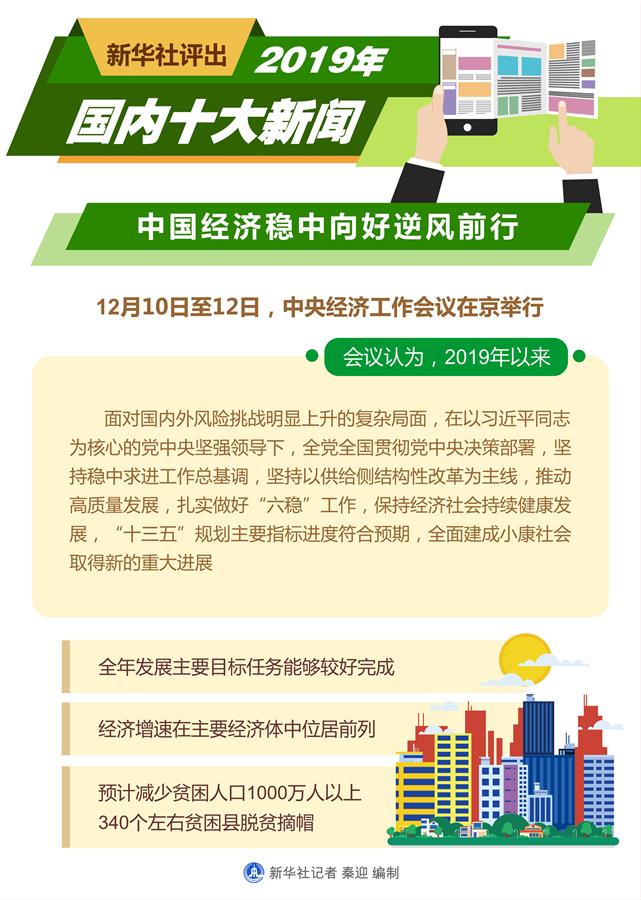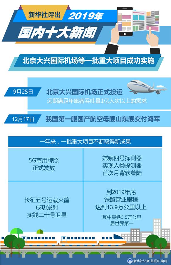 圖表:新華社評(píng)出2019年國(guó)內(nèi)十大新聞 新華社記者 秦迎 編制