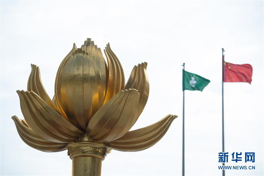 這是12月13日拍攝的澳門金蓮花廣場(chǎng)上的《盛世蓮花》雕塑。 新華社記者 張金加 攝