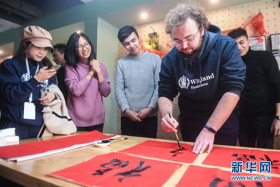 當(dāng)日,浙江省杭州市拱墅區(qū)上塘街道的瓜山新苑社區(qū)舉辦居民入住后的首個迎新年活動,社區(qū)內(nèi)的中外青年一起體驗寫春聯(lián)、貼福字、包餃子等中國傳統(tǒng)習(xí)俗,在熱鬧喜慶的氣氛中迎接即將到來的新年。