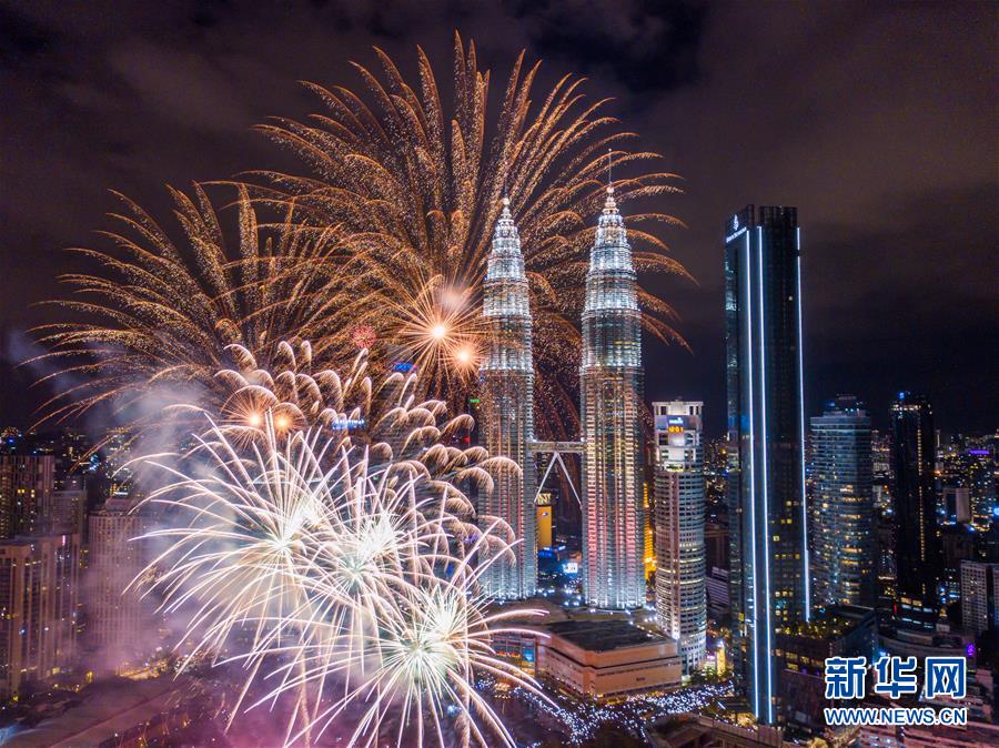2020年1月1日,焰火在馬來(lái)西亞吉隆坡的馬來(lái)西亞國(guó)家石油公司雙塔旁綻放,迎接新年的到來(lái)。新華社記者朱煒攝